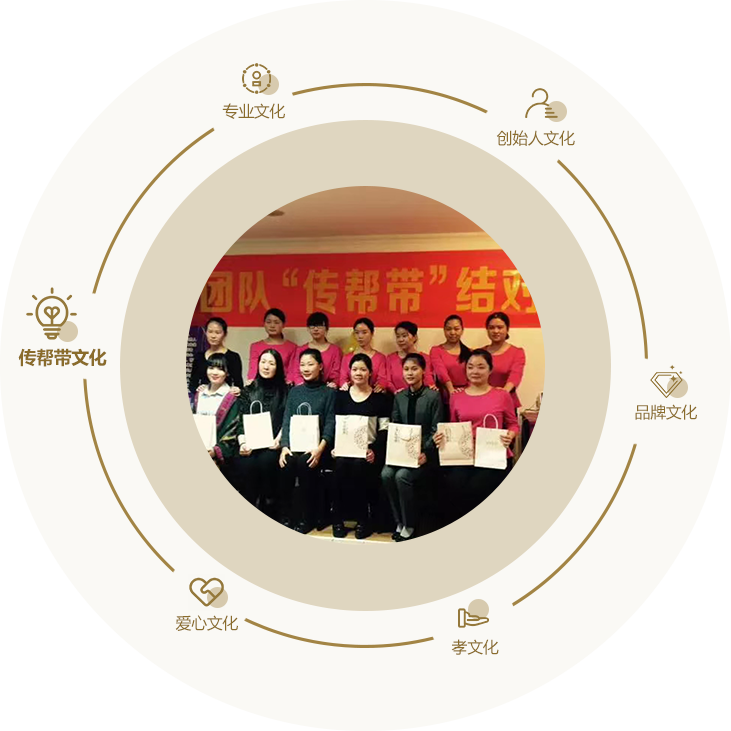 传:传承企业的优良传统,做一个孝、诚、信的人。 帮:通过专业培训、服务技能周、月层层考核,严格把关,来实现员工在企业最大的价值。 带:老员工自主自发的承接了培育新员工的责任,用爱心、耐心、责任心三心合一无私的传授,让员工能够在企业找到归宿感。